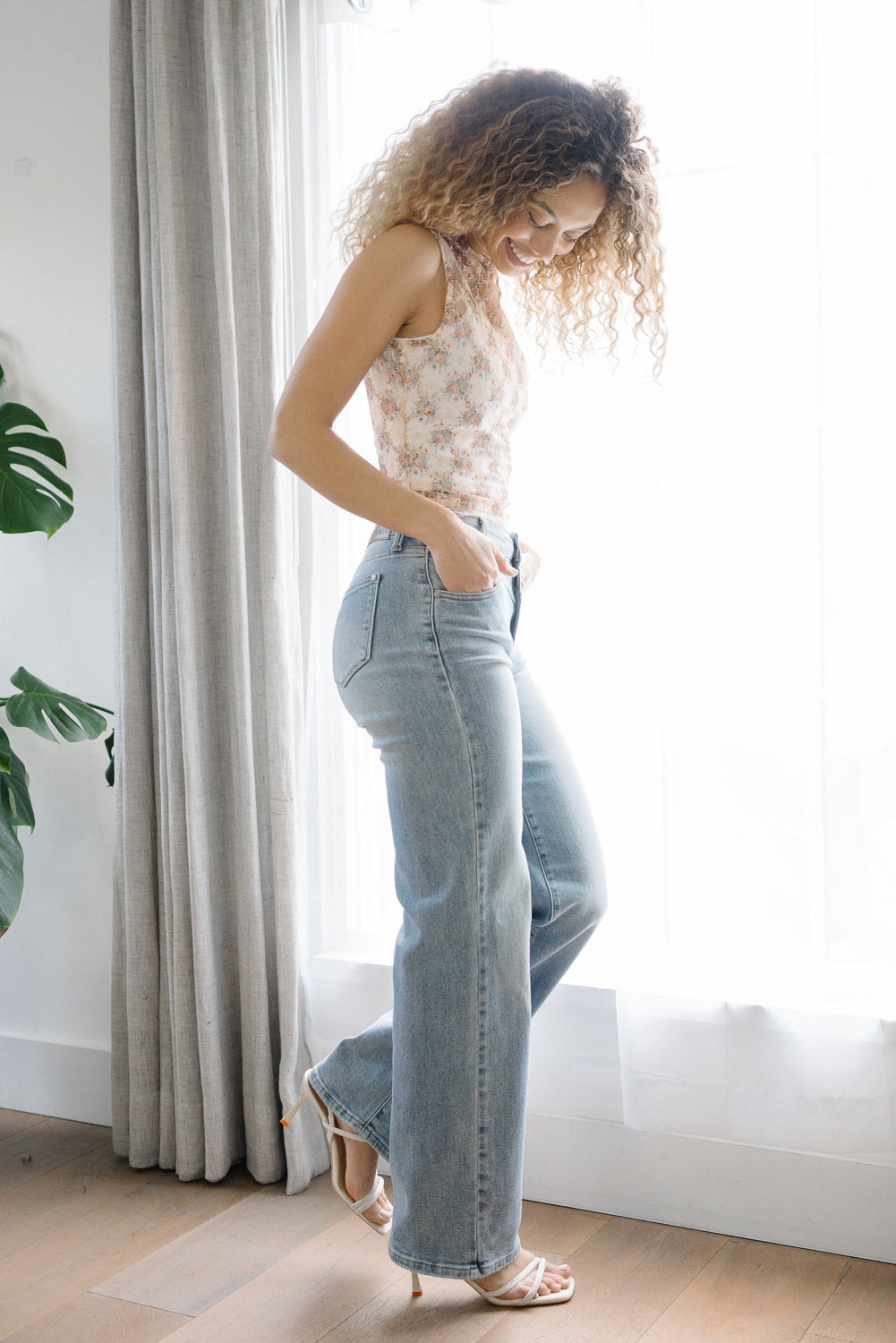 - High-Rise Waist: With an 11″ rise, these jeans sit comfortably at the high-rise level, offering ample coverage and support.