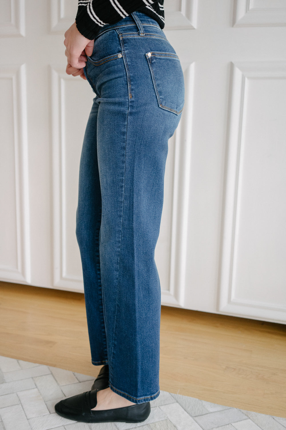 Aubrey Mid Rise Side Seam Detail Straight Jeans