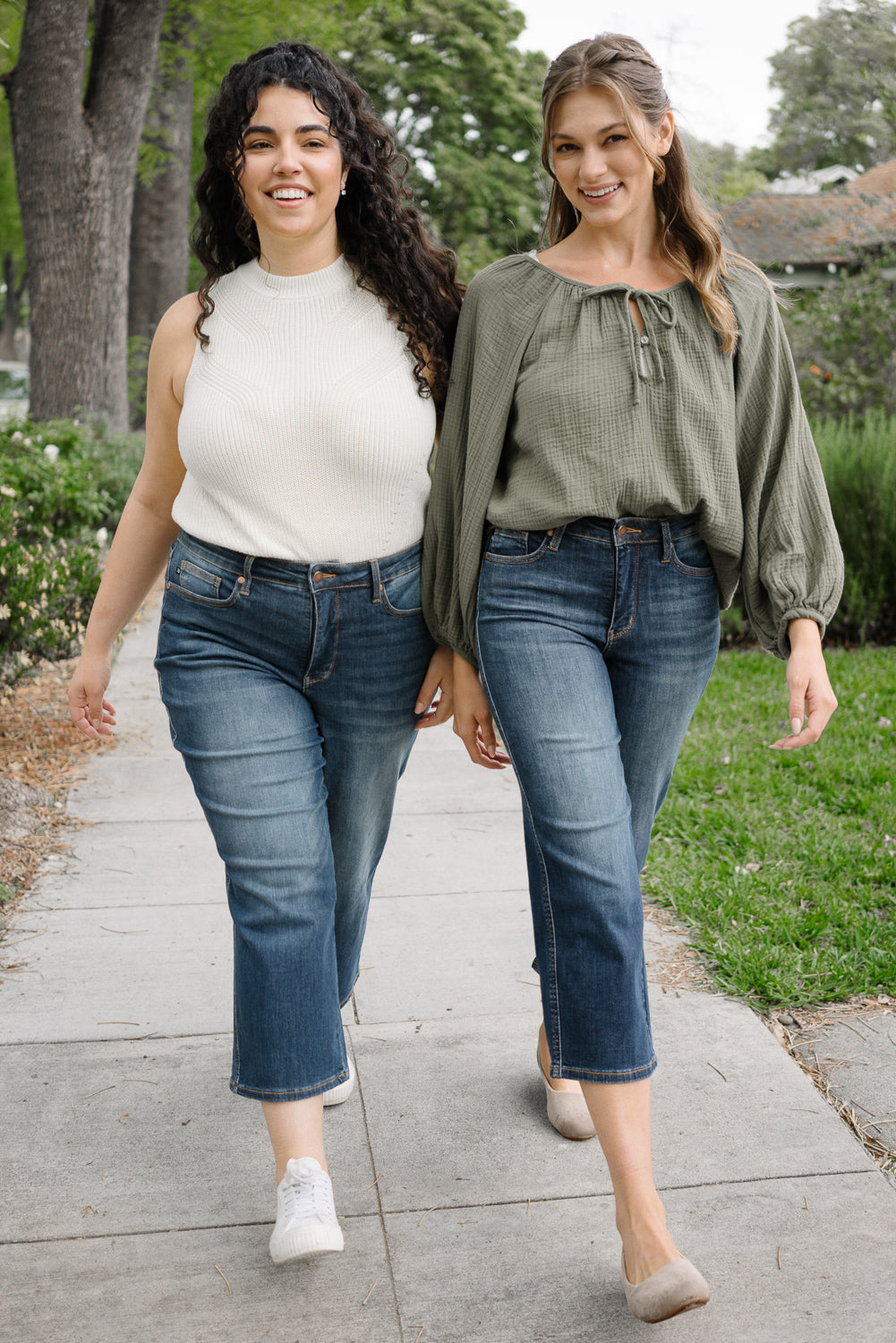 - Step into confidence with Cassandra Mid Rise Tummy Control Crop Wide Leg Jeans, featuring an 10-inch rise for a comfortable, flattering fit.