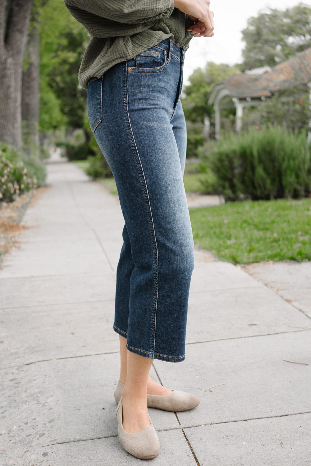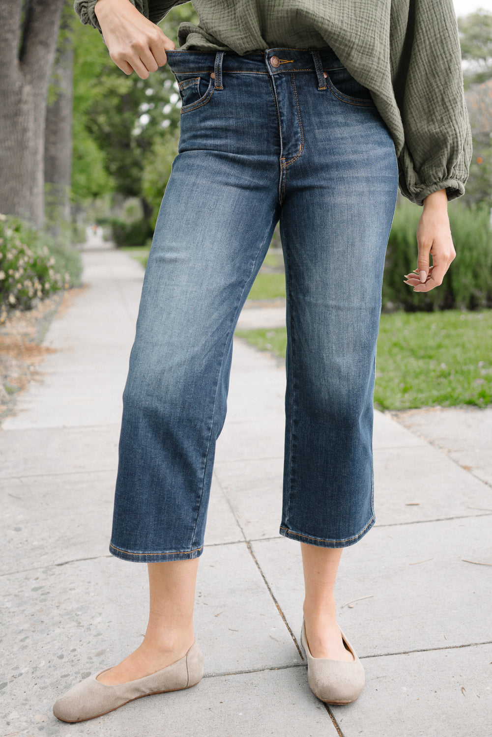 Cassandra Mid Rise Tummy Control Crop Wide Leg Jeans